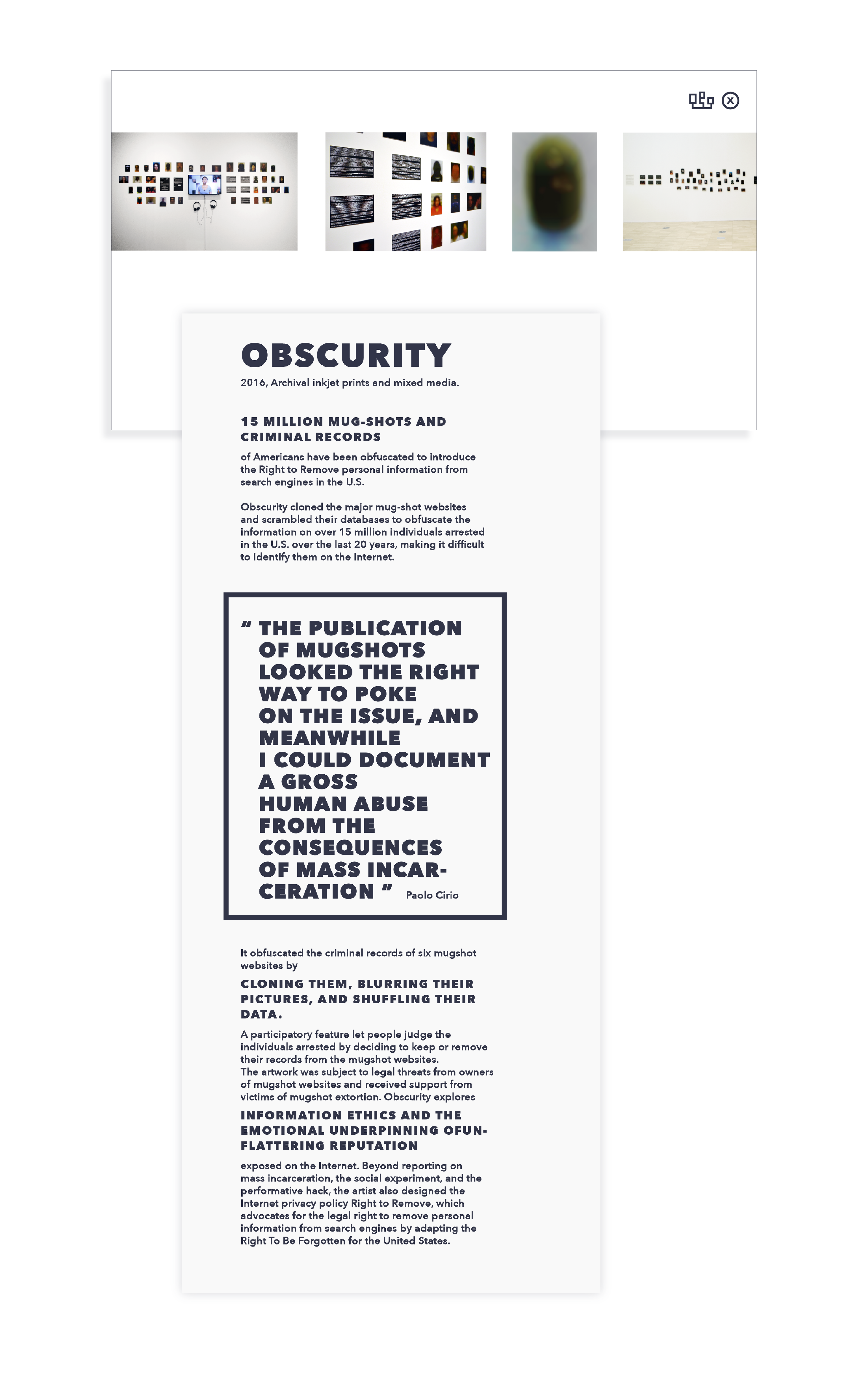 A touchtable application programmed via vvvv/v4 that introduces the media artist and hacktivist Paolo Cirio.